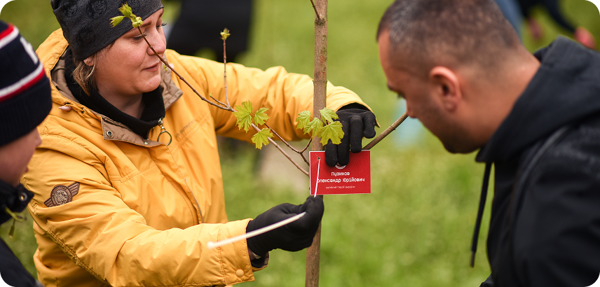 Together with the families of fallen soldiers, we are planting trees as living symbols of remembrance. A nameplate with a QR code is placed next to each tree, which links to the story of the hero's life and service. The trees are planted in memory of the soldiers who died in the war in Donbas.